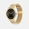 With clean lines and a modern minimalist sensibility, the Elliot is a true design classic ready for workdays and weekends. Finished with a sleek mesh bracelet, this gold tone round watch features a sunray dial detailed with a mix of numerical and stick markers and our Signature marker at 3 o