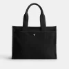 Carry as much (or as little) as you like with our lightweight cargo tote. Detailed with our cursive Coach script embroidery and iconic turnlock closure, this generously sized 42 has an open interior with room for a 16″” laptop and two outside pockets for easy organization. Crafted to last, this versatile carryall is made with cotton sourced from farms that use regenerative agricultural practices* and inspired by our commitment to reducing our impact on the planet. Now no matter where you go with it, you