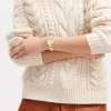 Timeless and elegant, the Cary watch is a sophisticated style perfect for day or night. The sleek gold tone bracelet design features a luminous mother-of-pearl signature dial detailed with a shimmering crystal bezel. It