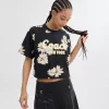 Coach Women Tops Floral Cropped Signature Script T Shirt In Organic Cotton Black