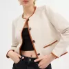 Coach Women Jackets & Outerwear Heritage C Canvas Cardigan Jacket With Leather Trim Saddle/Cream