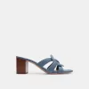 An elevated slip-on design to dress up or down, our Nikki sandal is crafted of casual-cool quilted denim with contrast stitching inspired by your favorite jeans. Featuring our interlocking signature and a stacked block heel, the sandal is finished with a comfortable padded footbed.