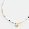 Coach Women Jewelry Signature Heart Beaded Pearl Choker Necklace Gold/Multi