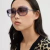 Coach Women Eyewear Swoop Temple Rectangle Sunglasses Transparent Purple