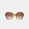 Coach Women Eyewear Wrap Around Hangtag Oversized Geometric Round Sunglasses Honey Tortoise